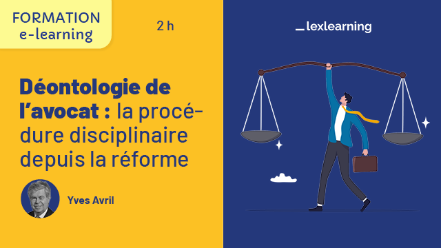La formation Lexlearning « Déontologie de l’avocat : la procédure disciplinaire depuis la réforme » détaille l’intégralité de la procédure applicable à cette matière.
