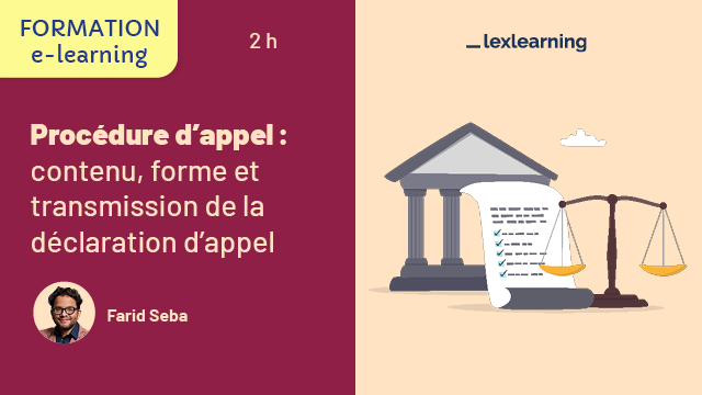 La formation Lexlearning « Procédure d’appel : contenu, forme et transmission de la déclaration d’appel » fournit aux professionnels du droit les outils pour comprendre et intégrer dans leur pratique future, les règles incontournables de formalisation et de transmission de la déclaration d'appel.
