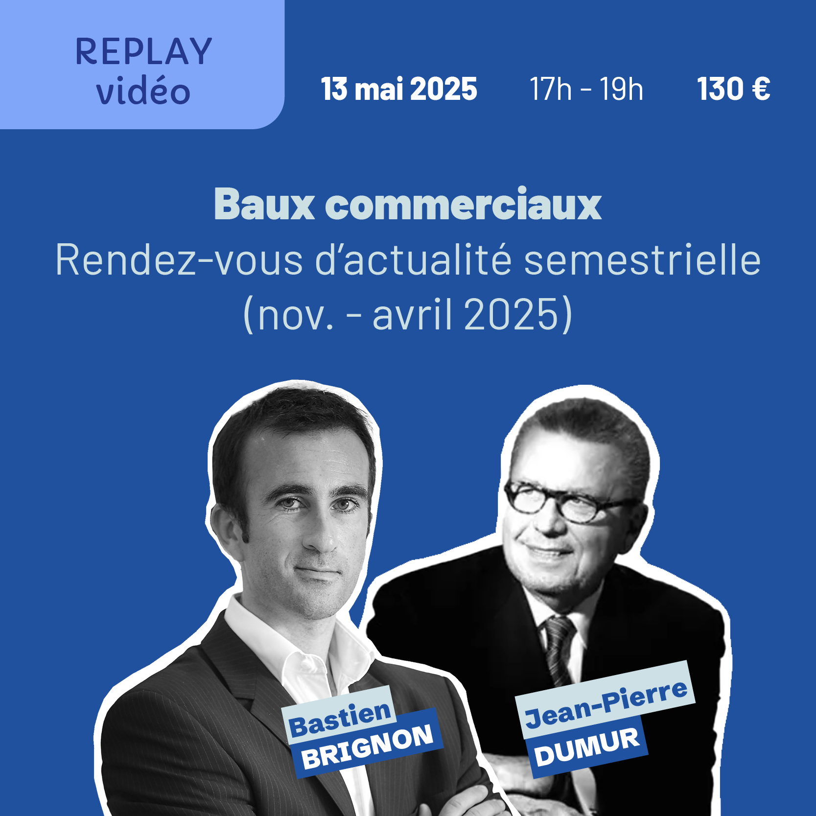 Cette formation a pour but de faire le point sur les dernières actualités jurisprudentielles et textuelles en matière de baux commerciaux. Par ailleurs, sera abordé le thème suivant: «Baux commerciaux: le secret des affaires confronté au droit de la preuve».